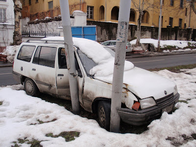 Kao sto se moze videti na ovim slikama kako se sneg oblikovao po konturama kola, poceo da se topi, zatim na udarenim mestima se vidi korozija (vrlo je malo verovatno da je bio zardjao na istim mestima pre nego sto se ovo desilo).